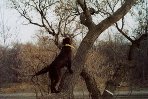 Autumn treeing a squirrel